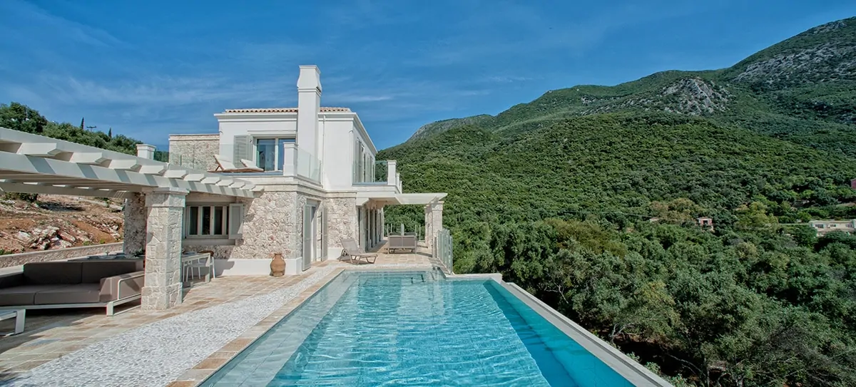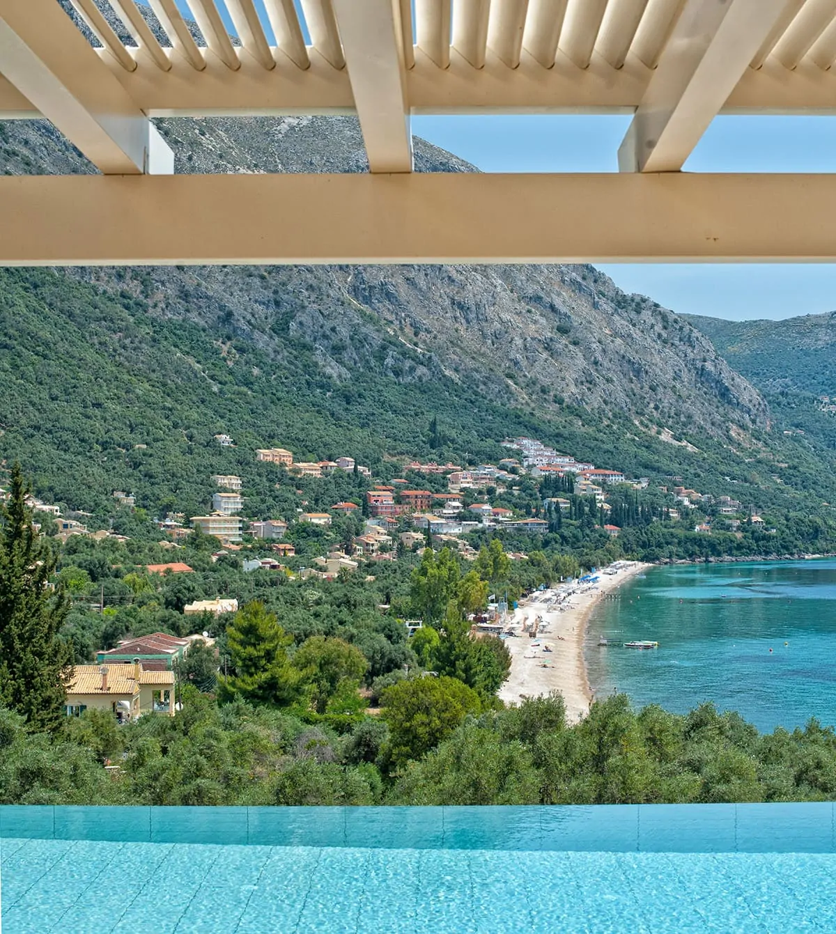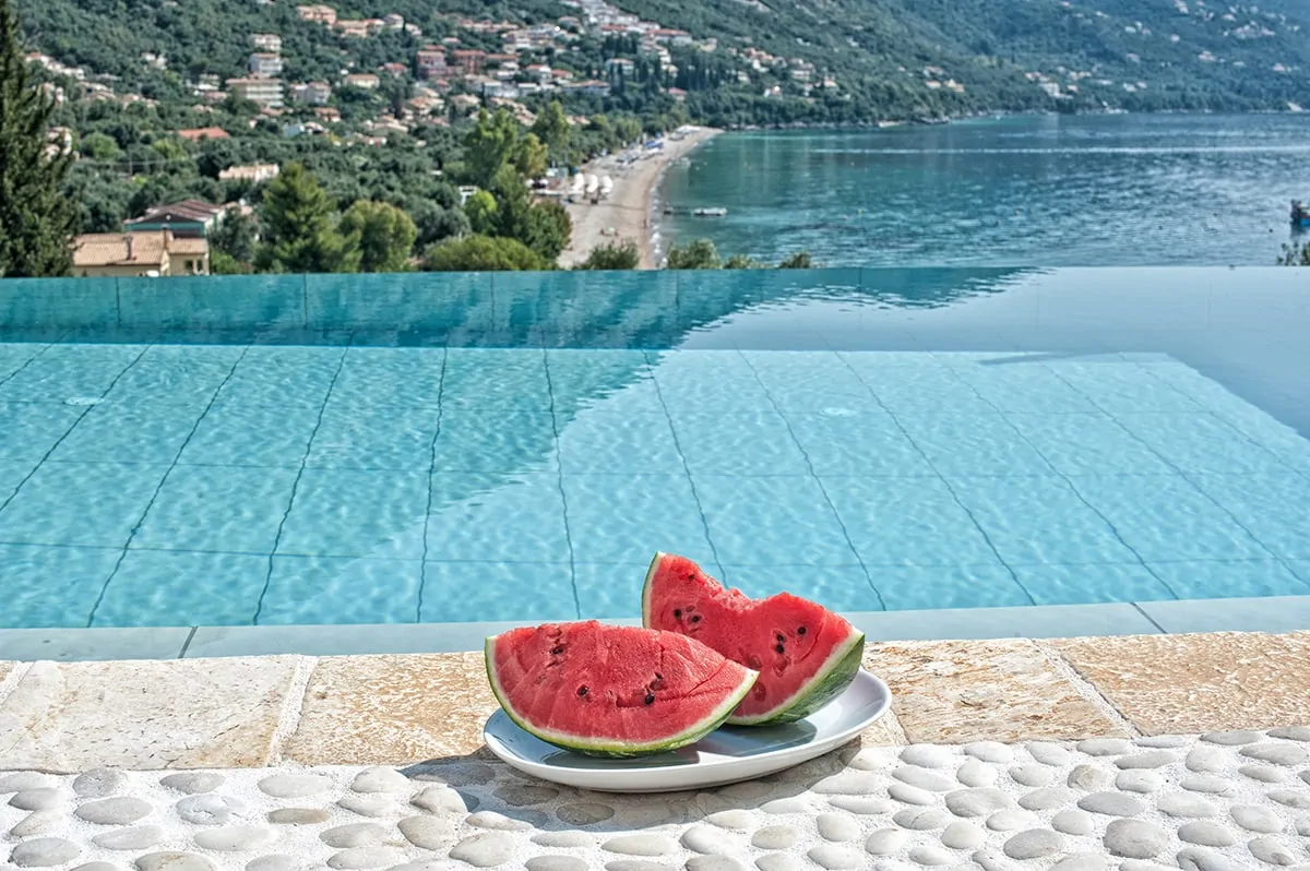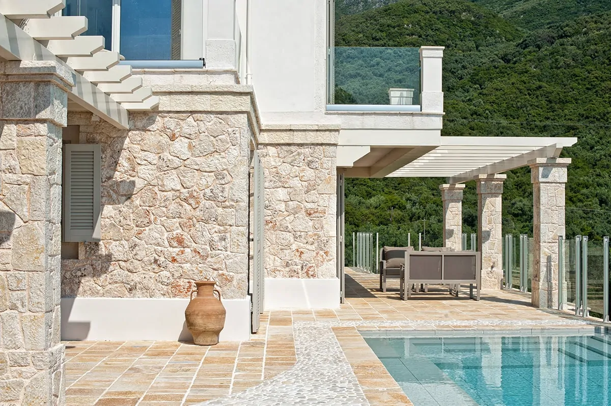A three storey villa located in one of the most impressive and lusciously green parts of Corfu, 17km north of the old Corfu town. This lavish villa is conveniently situated just 1km away from the centre of Barbati. Within a stone’s throw of a beach, you can find traditional restaurants and enjoy water sport activities. The particular layered hillside structure and contemporary design set Villa Barbati apart from any other luxury destination.