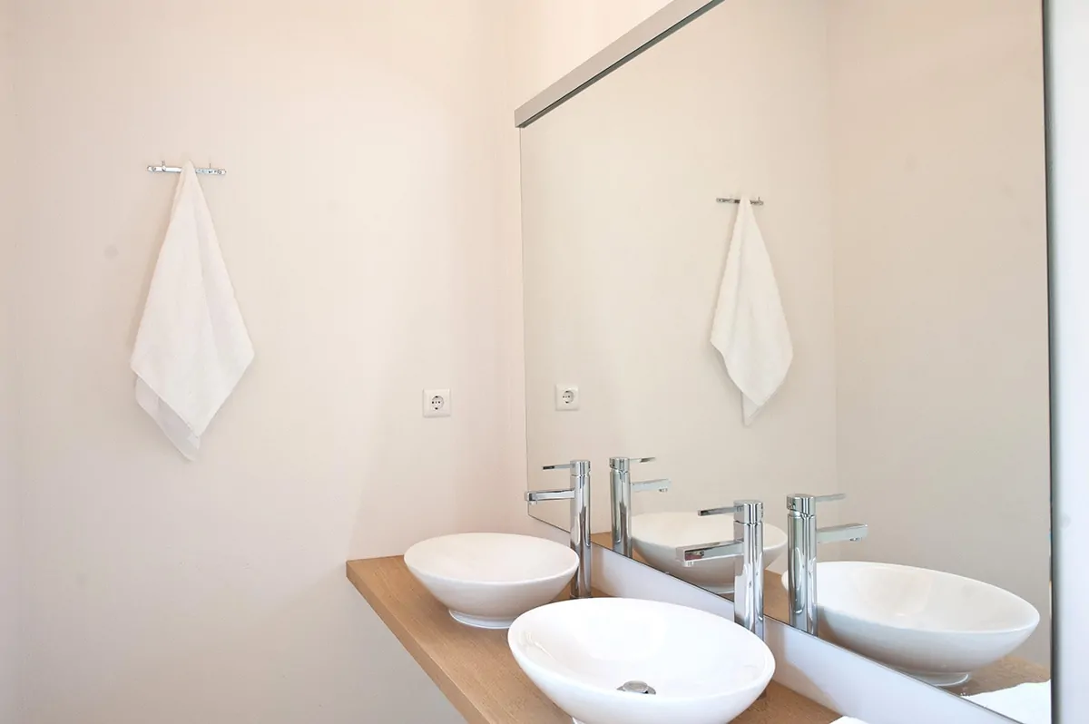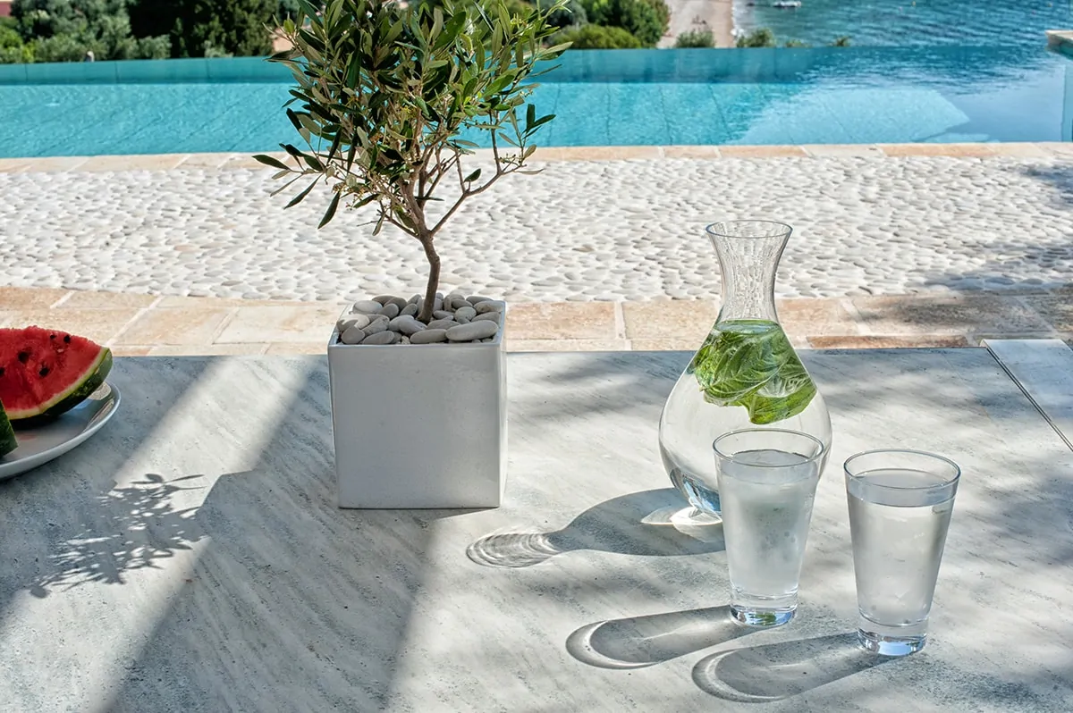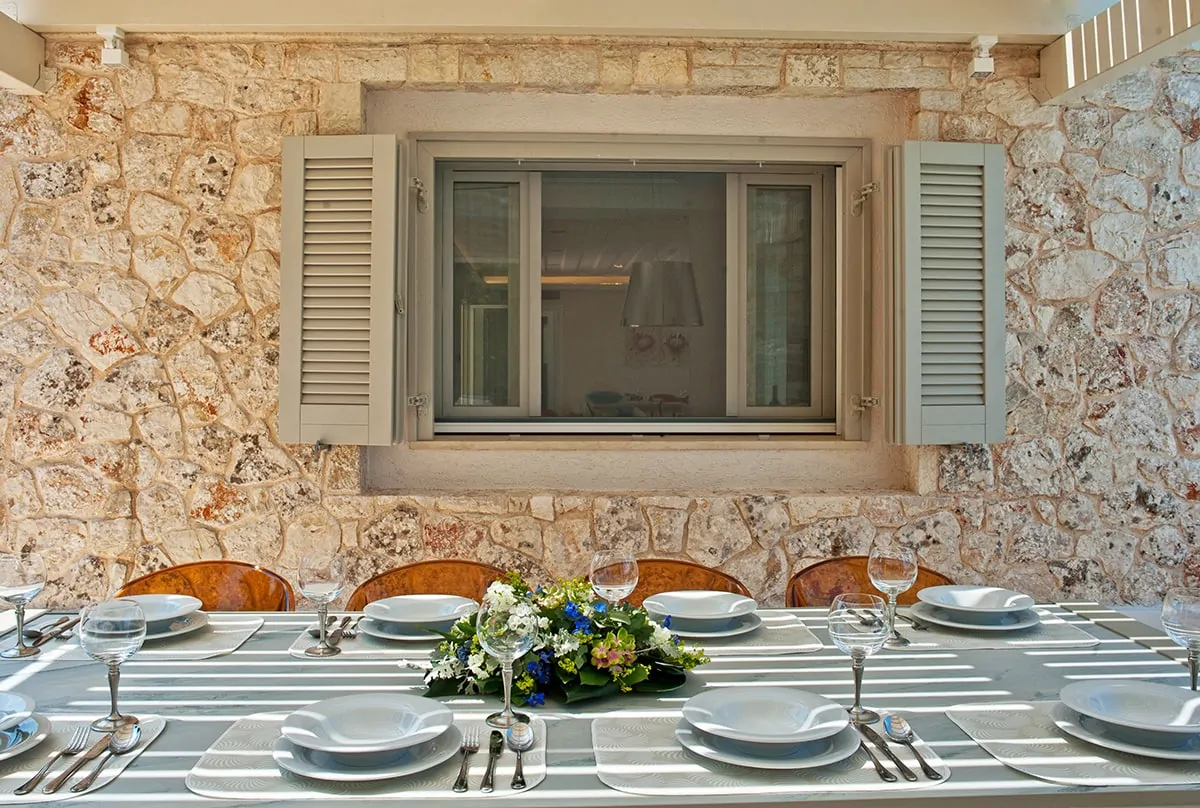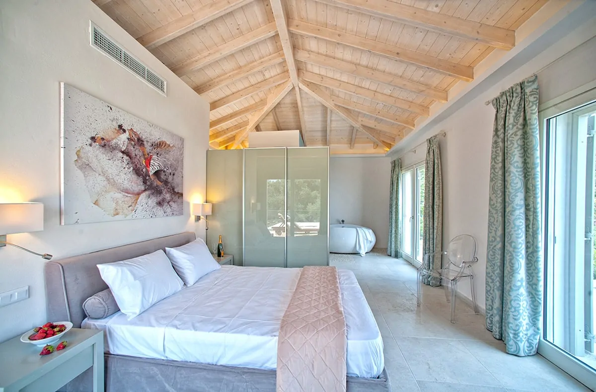The lower level houses two more bedrooms that have direct access to the villa’s garden. Each and every bedroom in Villa Barbati is chic and stylish while features a full air-conditioning system and TV. The master bedroom is on the top of the villa, offering gorgeous views of the bay with a soft and charming decorative finish. This bedroom features a shower and freestanding bathtub, as well as a furnished balcony where you can enjoy the striking view.
