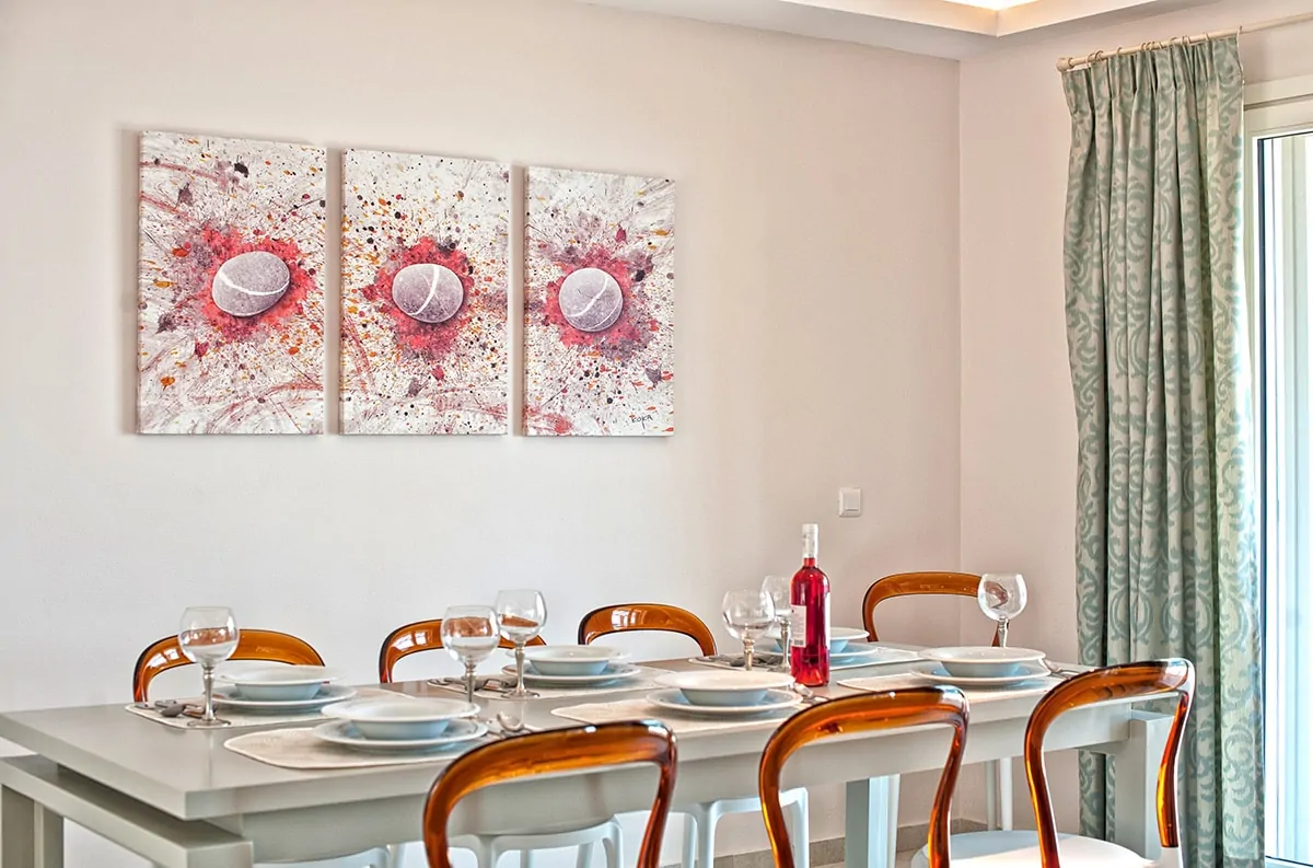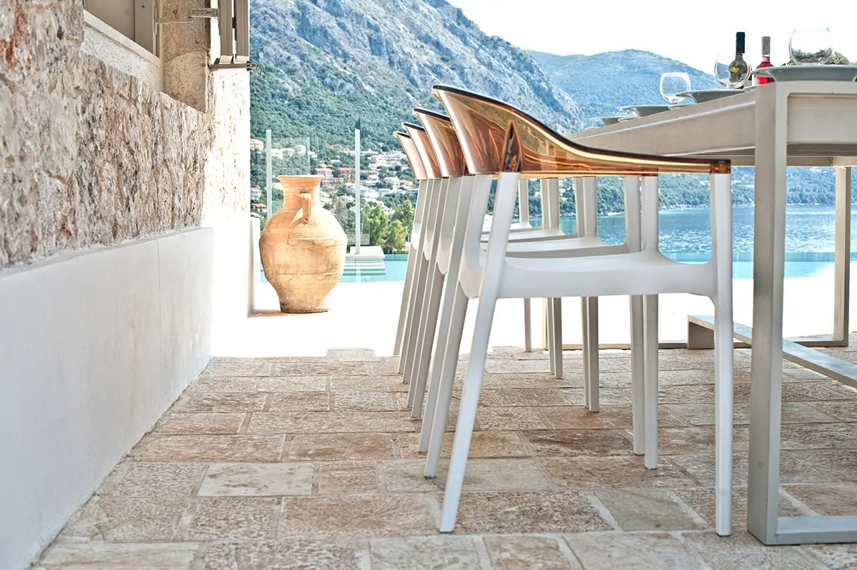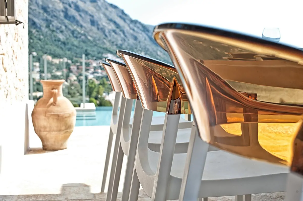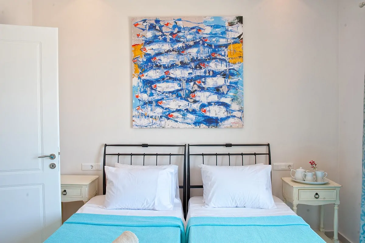 The lower level houses two more bedrooms that have direct access to the villa’s garden. Each and every bedroom in Villa Barbati is chic and stylish while features a full air-conditioning system and TV. The master bedroom is on the top of the villa, offering gorgeous views of the bay with a soft and charming decorative finish. This bedroom features a shower and freestanding bathtub, as well as a furnished balcony where you can enjoy the striking view.